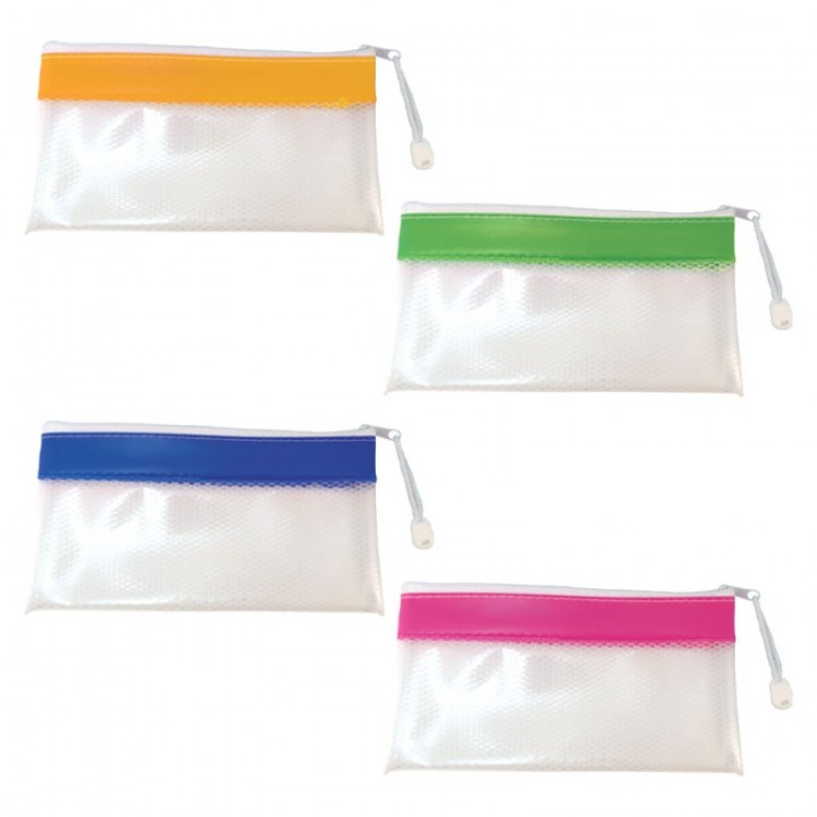 Aplankas DL(22x12cm) su užtrauktuku /tinkleliu, skaidrus su spalv. juostele, SPREE
