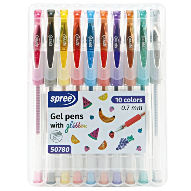Gelio rašikliai, rinkinys 0.7mm 10sp. Glitter SPREE