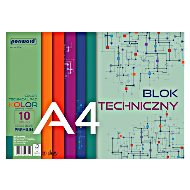 Kartonas A4/ 10l. PENWORD BT-4, 250g/m2, spalvotas dvipusis (sąsiuvinis)