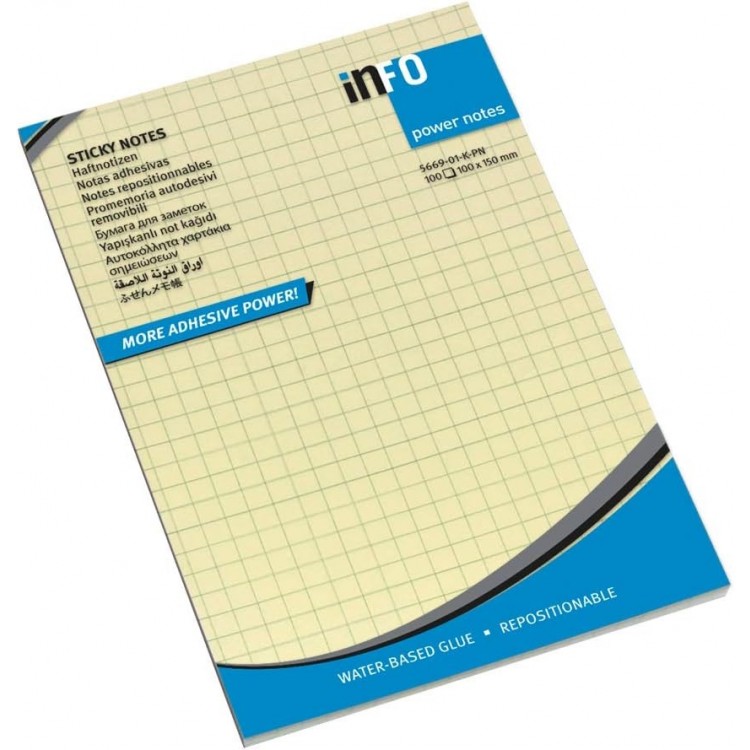 Lipnūs lapeliai INFO power notes 100x150mm 100l. langeliais