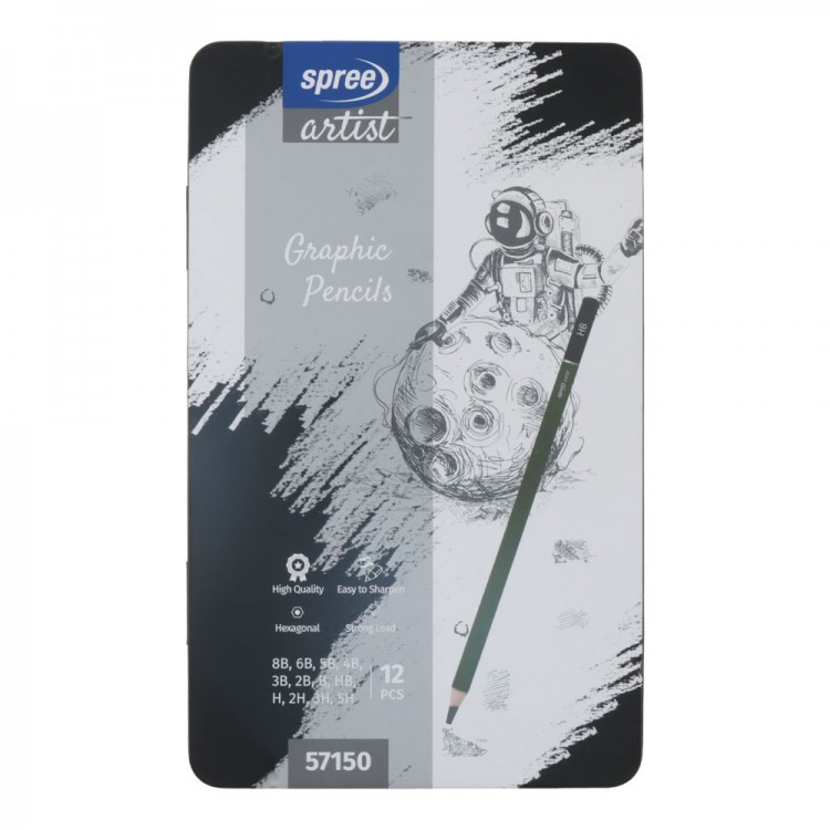 Pieštukai braižybai SPREE 8B-5H 12vnt. met.dėžutėje