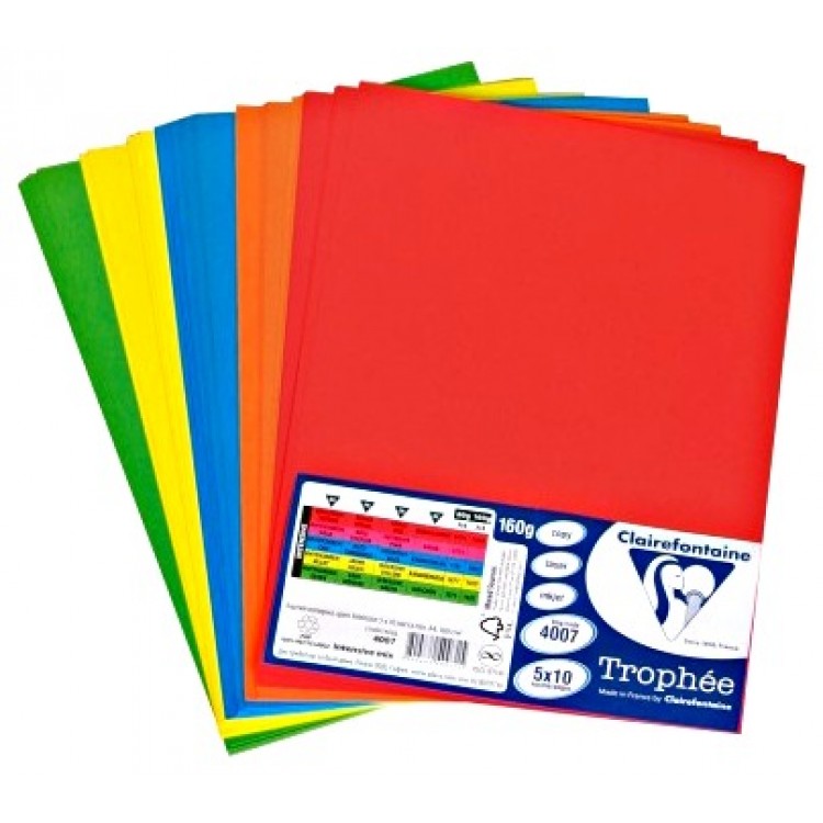 Popierius MIX A4/160g /50l. Clairefontaine 5sp.x10 ryškių spalvų