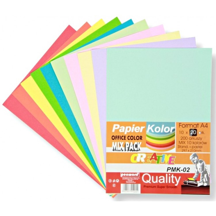 Popierius MIX A4/80g/200l. PENWORD 10sp.x20, ryškių ir pastelinių spalvų rinkinys PMK-02
