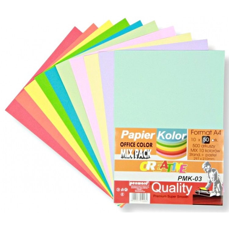 Popierius MIX A4/80g/500l. PENWORD 10sp.x50, ryškių ir pastelinių spalvų rinkinys PMK-03