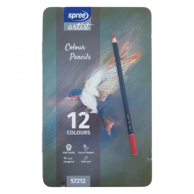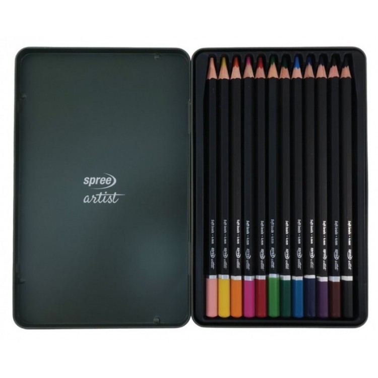 Spalvoti pieštukai 12sp. SPREE met. dėžutėje, šešiabriauniai