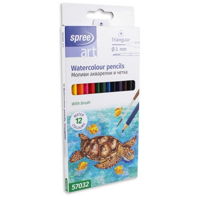 Spalvoti pieštukai akvareliniai 12sp. SPREE tribriauniai + teptukas